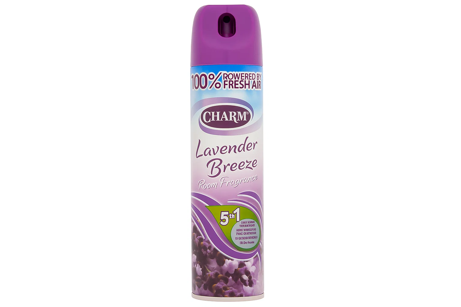 Bring home the calming freshness of lavender with Charm Lavender Breeze — a premium air freshener available at Ambas Foods.