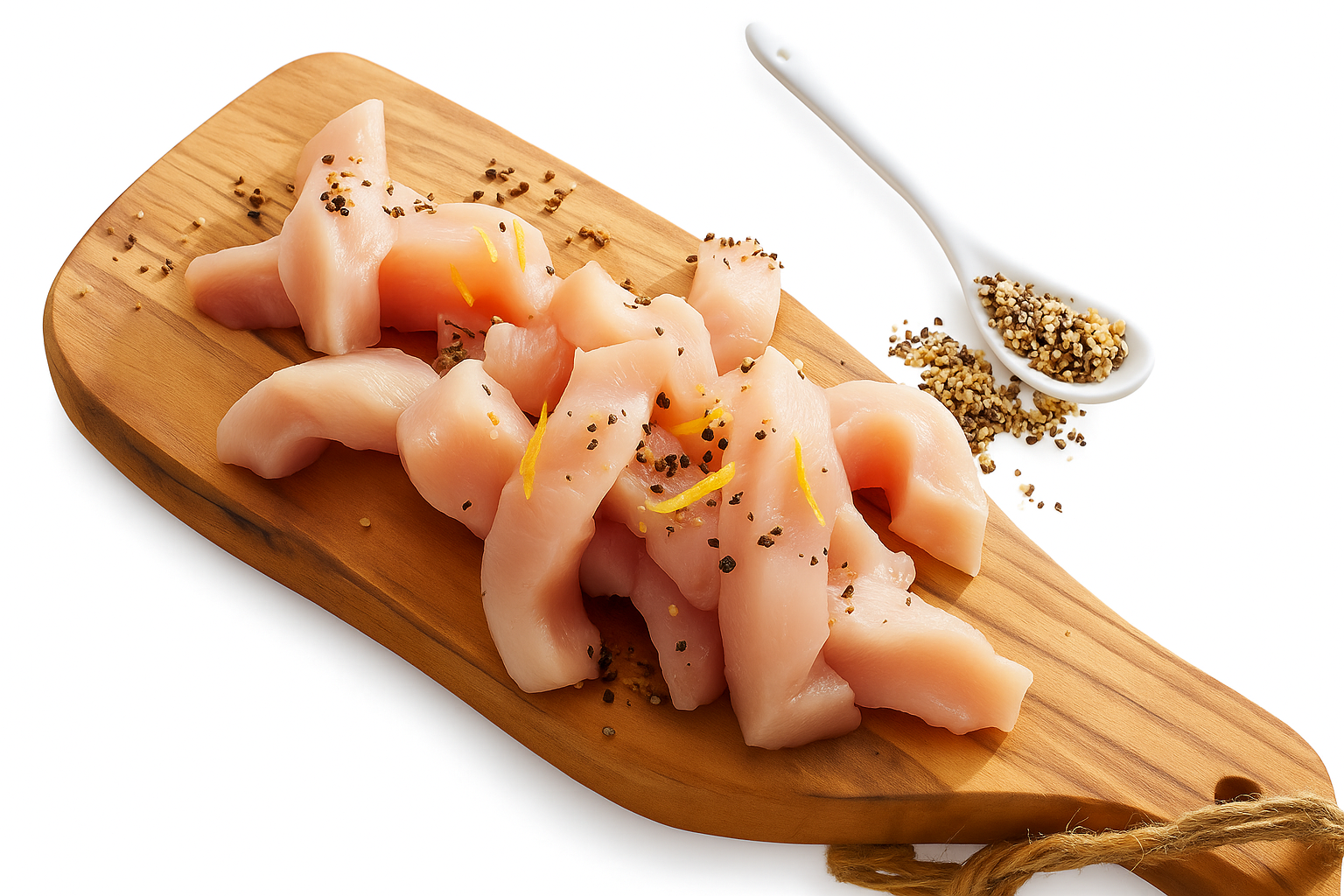 Chicken Strips from AMBAS FOODS are cut from premium boneless chicken and sliced into uniform strips for fast and even cooking