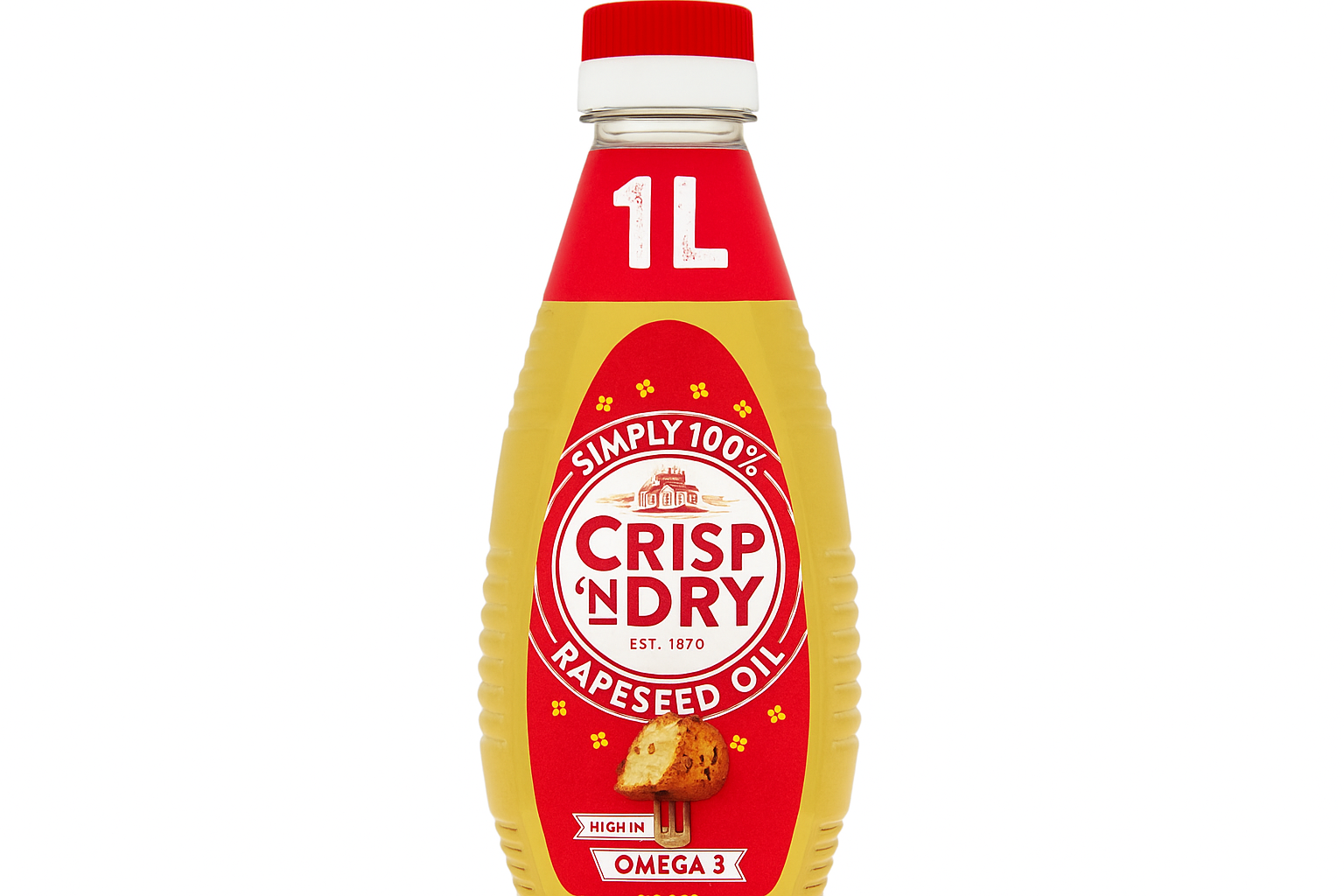 Crisp ‘N Dry 100% Rapeseed Oil 1L is a pure and natural cooking oil crafted for health-conscious kitchens. Naturally high in Omega-3 and lower in saturated fat than olive oil, it supports heart health while delivering exceptional cooking performance. With a high smoke point, it’s perfect for frying, grilling, baking, and sautéing. Free from artificial additives and preservatives, it comes in a sustainable bottle made with over 50% recycled plastic. Suitable for vegetarians and kosher diets, this 1L pack is ideal for everyday healthy cooking.