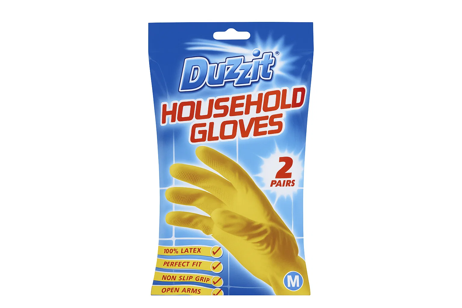Ensure maximum protection and comfort while cleaning with Duzz It Gloves, exclusively available at Ambas Foods. These high-quality gloves are designed to shield your hands from detergents, hot water, and harsh chemicals. Made from durable, flexible material, they offer a non-slip grip and a soft inner lining for extra comfort during long cleaning sessions. Perfect for washing dishes, bathroom cleaning, and general household tasks, Duzz It Gloves combine reliability with a snug fit, making everyday cleaning easier and safer.