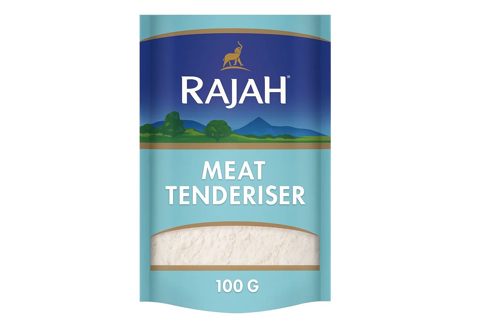 Rajah Meat Tenderiser 100g brings you a premium blend specially crafted to soften and improve the texture of all types of meat making every dish tender juicy and flavourful this tenderiser works effectively on beef chicken lamb mutton fish and other proteins allowing them to cook evenly and absorb marinades spices and seasonings more deeply